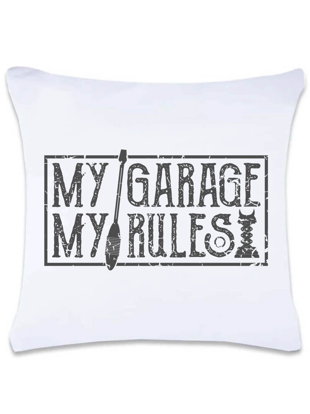 Dekorační polštář s potiskem Má garáž má pravidla