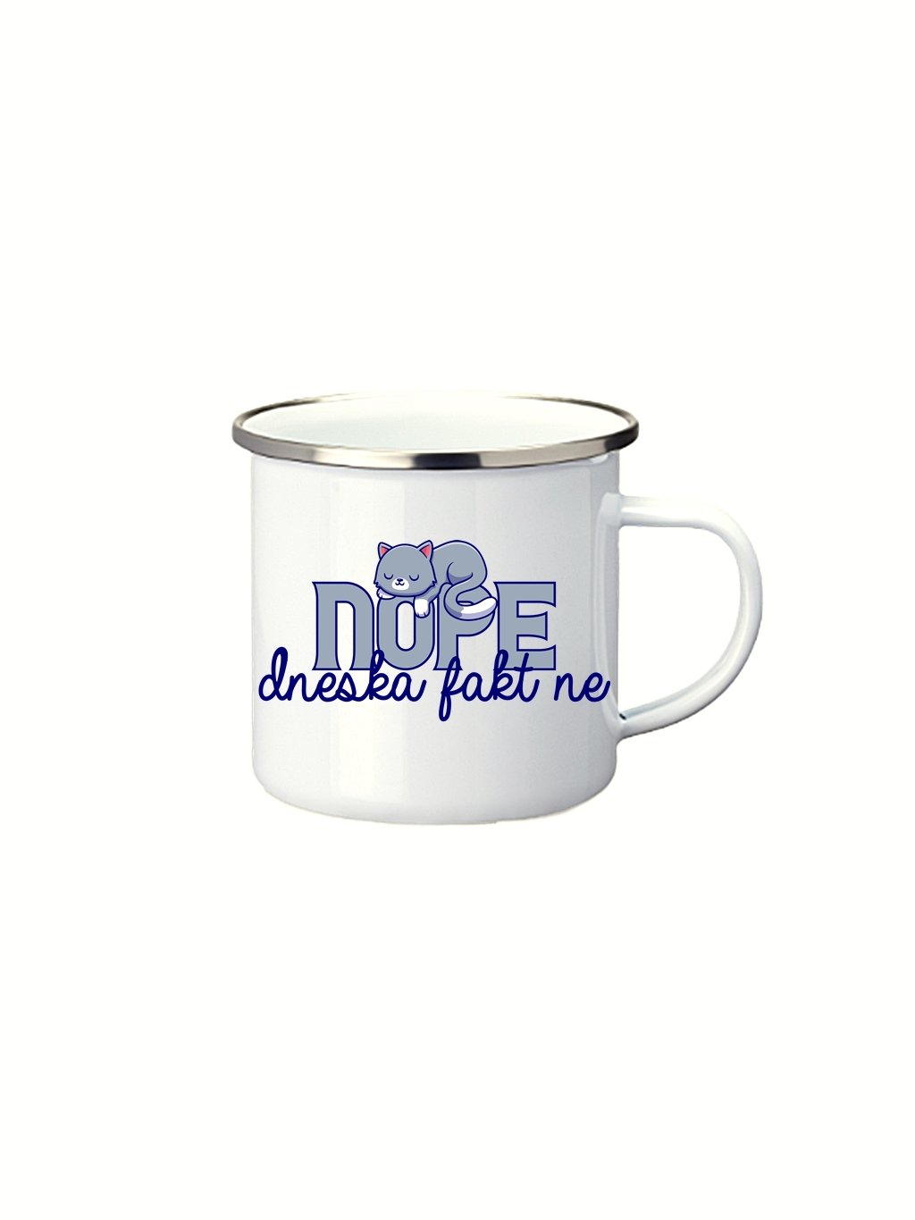 Nostalgický MINI smaltovaný hrnek se stříbrným okrajem, ideální pro ranní pressíčko s potiskem Dneska fakt ne. Plecháček je skvělý parťák na toulky přírodou, ale i na každodenní používání ve Vaší domácnosti. Neotřelý dárek pro Vaše blízké. Kvalitní a odolný sublimační potisk věrně zobrazí barvy například i vašich fotografií.