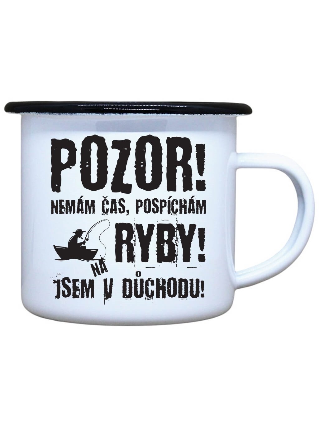 Nostalgický plechový smaltovaný hrnek s černým okrajem a potiskem Důchodce ryby, ideální pro Váš čajík, kafíčko, kakao, ale třeba i na pořádný grog ve dvou oblíbených velikostech. Plecháček je skvělý parťák na toulky přírodou, ale i na každodenní používání ve Vaší domácnosti.